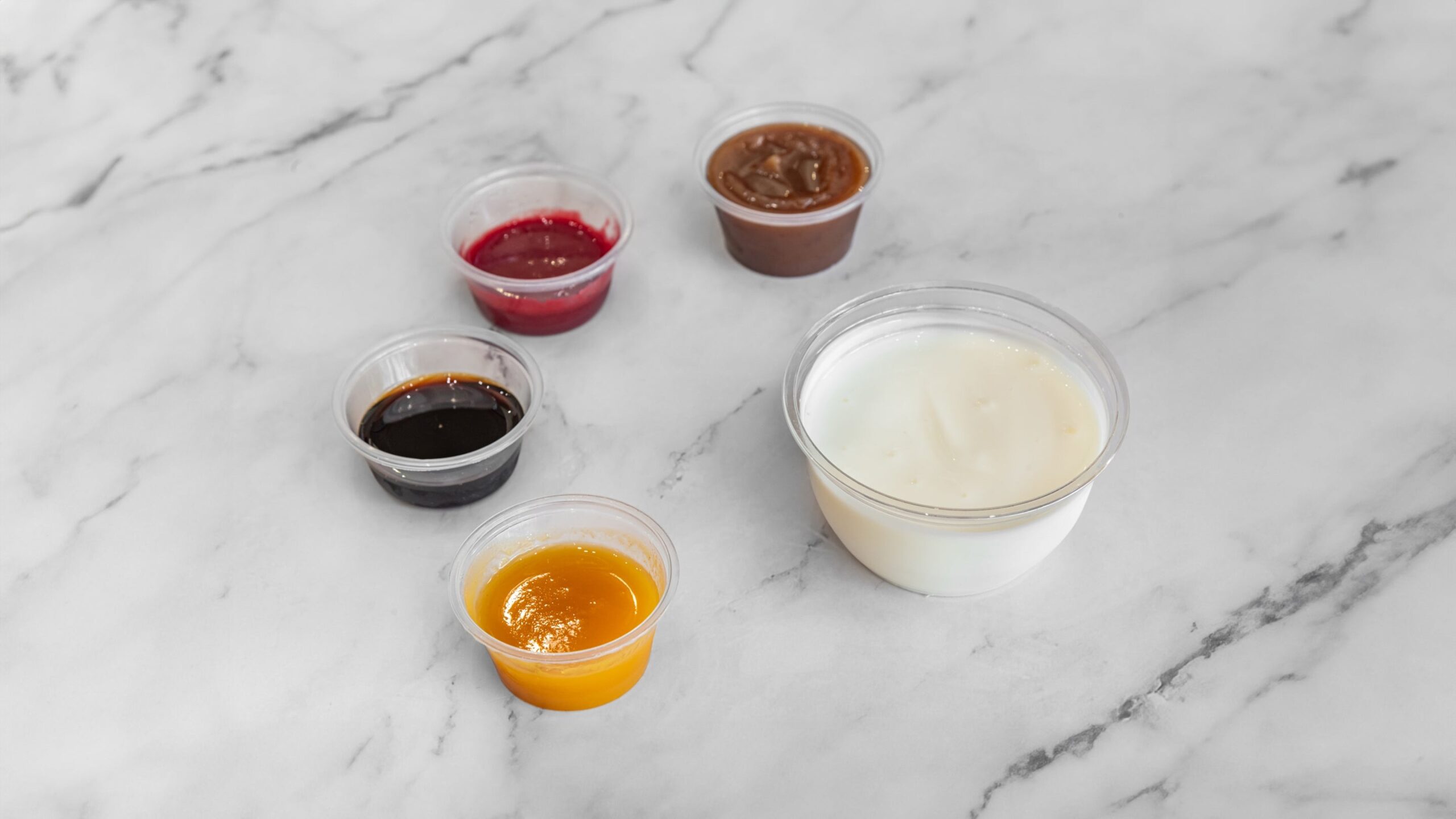 Avec coulis de fruits rouges / exotique / caramel ou crème de marron