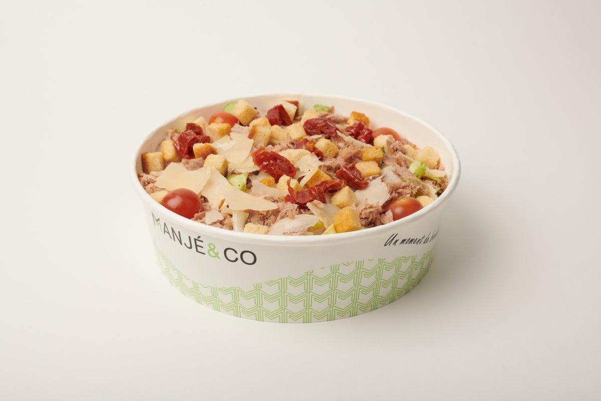 Thon, salade, croutons, tomates séchées, parmesan, tomates cerises