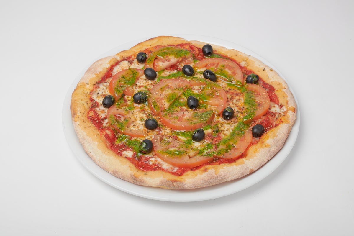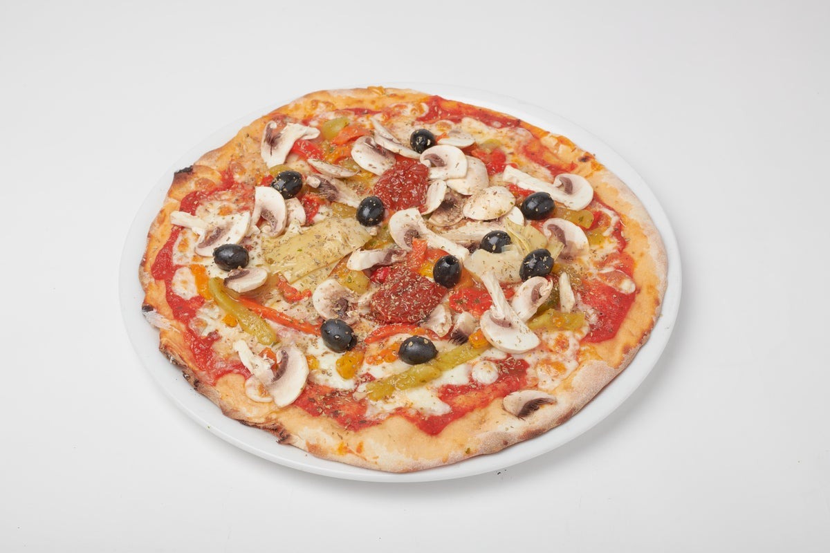 Tomate, mozzarella, champignons, poivrons grillés, artichauts